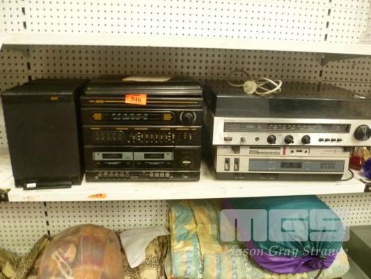 AWA STEREO SYSTEM & SPEAKERS, GE VHS RECORDER & SANYO RECORD PLAYER