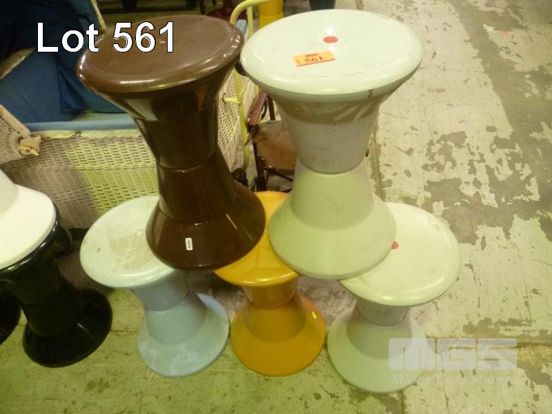 5 x CAROMA PLASTIC STOOLS, BEIGE, BROWN, LIGH TBLUE & 2 x GREY