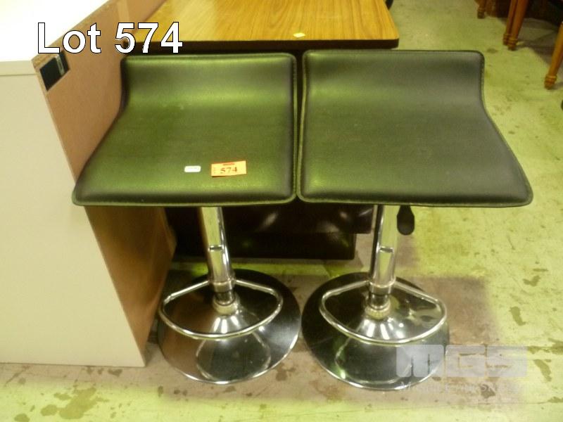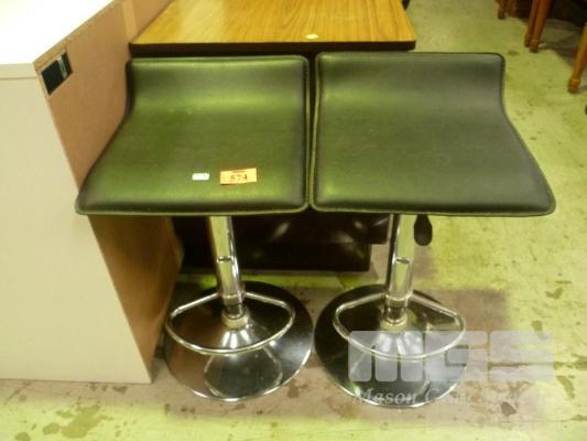PAIR CHROME FRAMED, BLACK VINYL, STOOLS, GAS LIFT