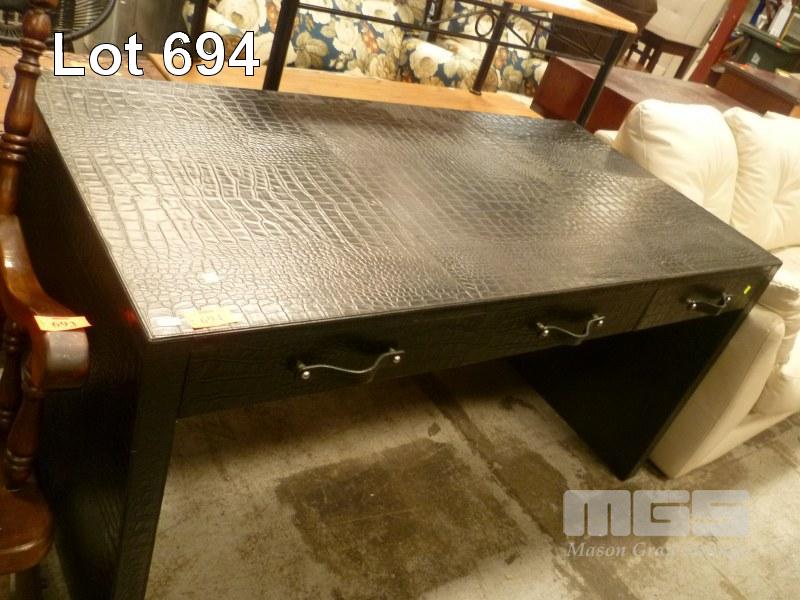 OFFICE DESK, BLACK CROCODILE LOOK SURFACE, 3 DRAWER