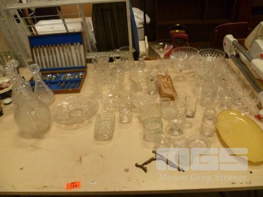ASSORTED CRYSTAL/GLASSWARE, DECANTERS, BOWLS, ETC, 1 x TABLE