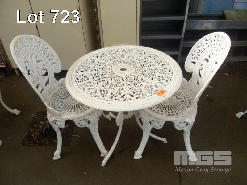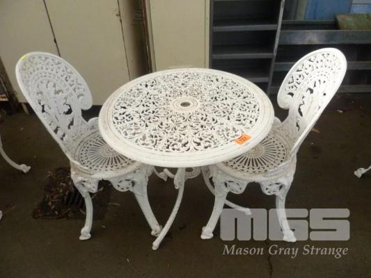 WHITE PAINTED CAST ALUMINIUM 3 PIECE OUTDOOR SETTING