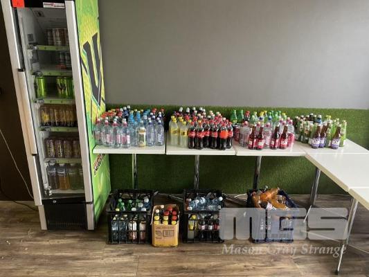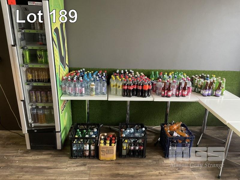 LARGE QUANTITY SOFT DRINKS, WATER, ICED TEA, ETC, CONTENTS FRIDGE & TABLE (APPROX 350), V, ROCKSTAR, PUMP, LIFT, COKE, ETC