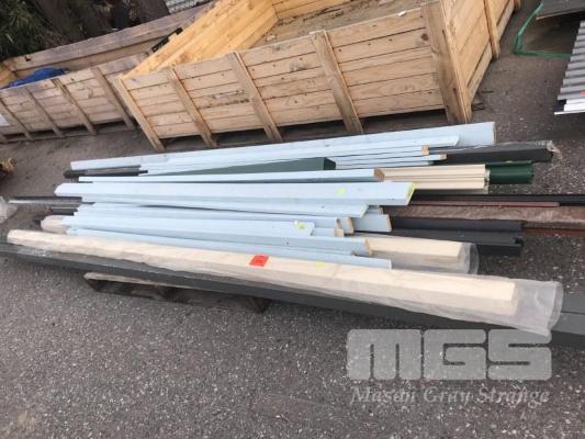 ASSORTED BUILDING MATERIAL INC PINE SLATS & CAPPING, SQUARE STEEL POSTS, FENCE POSTS & ALLOY EXTRUSION 1 x PALLET