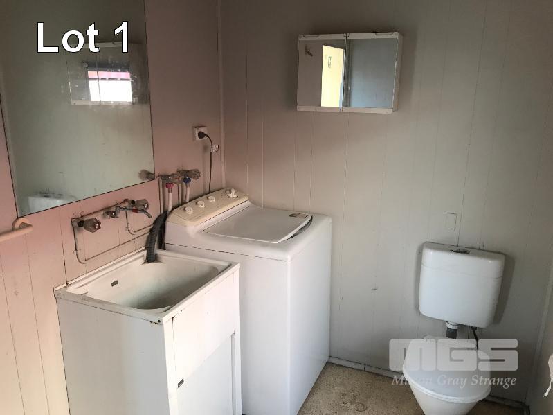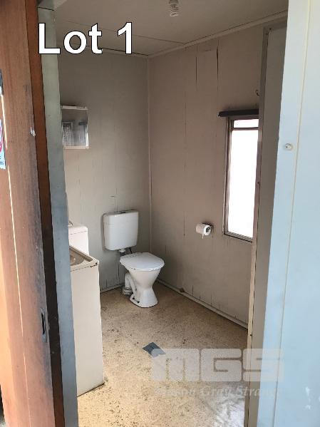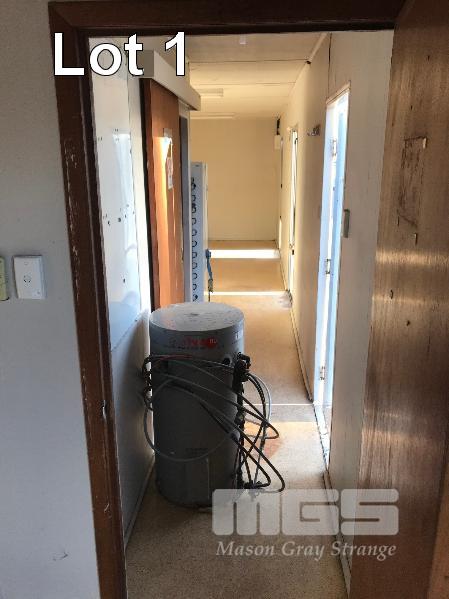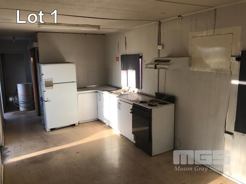TRANSPORTABLE BUILDING, 12 x 3m x 310cm H SINGLE DOOR ENTRY, 7 x WINDOWS 590 x 280cm OPEN PLAN KITCHEN WITH SIMPSON NOVA 3L3CTRIC 4 PLATE OVEN RANGE MISTRAL EXHAUST HOOD KELVINATOR FRIDGE/FREEZER, 500 LITRE SINK & CABINETRY 290 x 280cm OFFICE WITH A/C 290 x 175cm BATHROOM/LAUNDRY SHOWER CUBICLE, TOILET PLUMBED LAUNDRY TROUGH & 7.5kg SIMPSON WASHING MACHINE MIRRORS, EXTRACTION FAN 290 x 95cm ENTRY HALL POWER/LIGHTING & EVERHOT HWS, 80 LITRE ELECTRIC (DOM 2014) FORK POCKETS