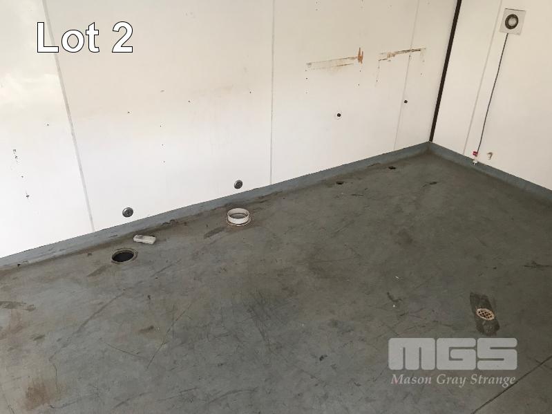 TRANSPORTABLE ABLUTION BLOCK, 6m x 3m 2 ROOM POWER, A/C, LIGHTING, FIRST AID KIT ALL PLUMBING REMOVED FORK POCKETS