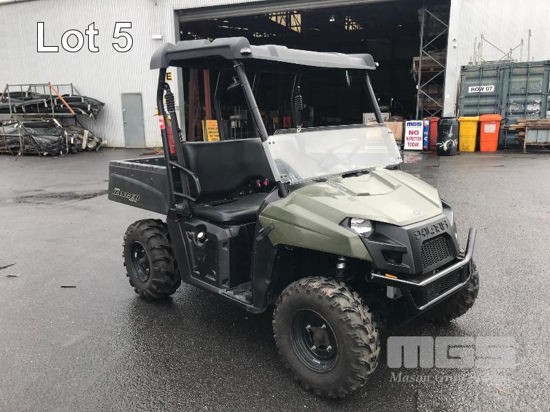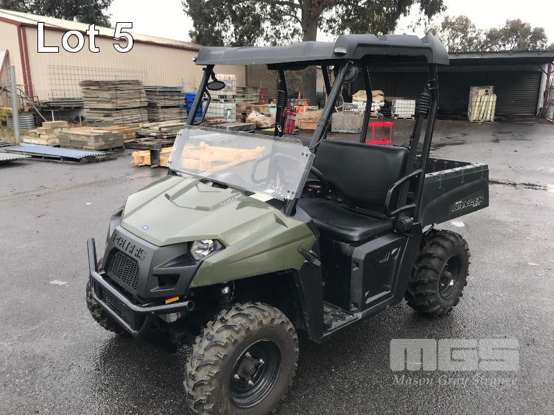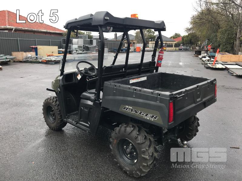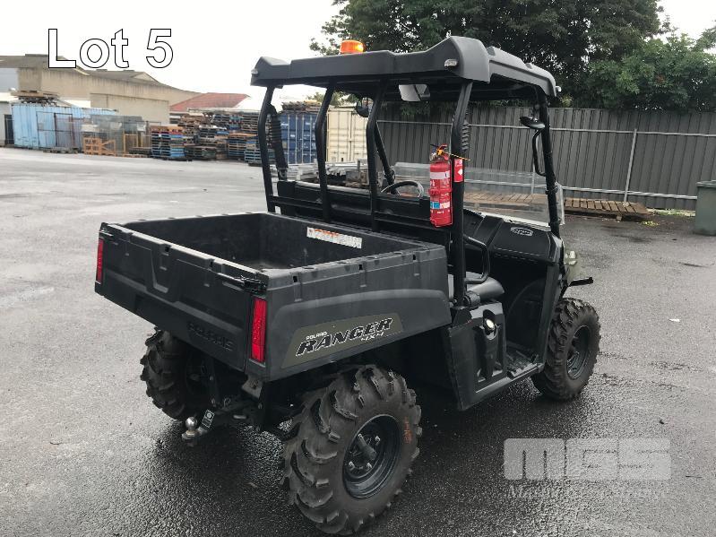 2013 POLARIS ATV RANGER 400 MID SIZE ATV 4 x 4 VIN: 4XARH45A4DE224249 VARIABLE TRANSMISSION, 455CC PETROL, 2 SEAT, 4 x 4 RIGHT HAND DRIVE, ROPS CAB GAS LIFT ASSIST TIP 80 x 115cm POLY TRAY HAZARD LIGHT, FIRE EXTINGUISHER 12V AUX PLUG, CUP HOLDERS, NUDGE BAR 12" RIMS, 50mm BALL HITCH KEY#30 (NO PAPERS, WITH OWNER'S MANUAL, NO SERVICE BOOKS)