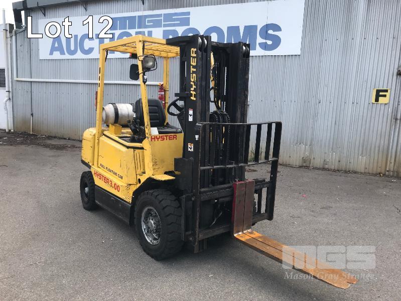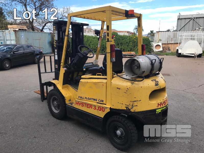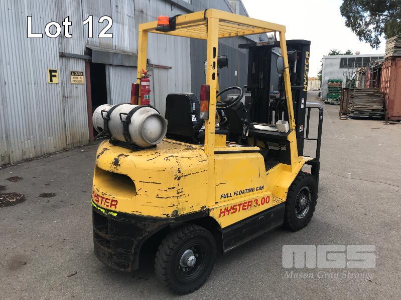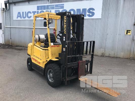 FORKLIFT, HYSTER MOD: 3.00 HOURS: 17,385 INDICATED 3 STAGE CONTAINER MAST SIDE SHIFT 4 CYLINDER LPG PNEUMATIC TYRES KEY #18 S/N:A466R02240V
