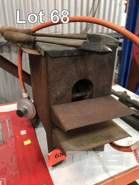 PORTABLE TIN SMITHS OVEN, LPG WITH 2 x IRONS (IDEAL FOR BLACKSMITHS SHOP)