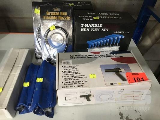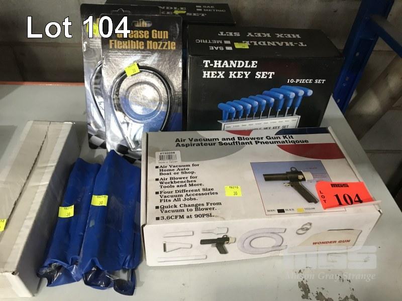 MIXED TOOL PACK, 2 x T-HANDLE SETS, SAE IMPERIAL 2 X TUBE SOCKET ROLLS VAC/BLOWER GUN KIT 2 x GREASE NOZZLES & 5 x TIN SHEARS