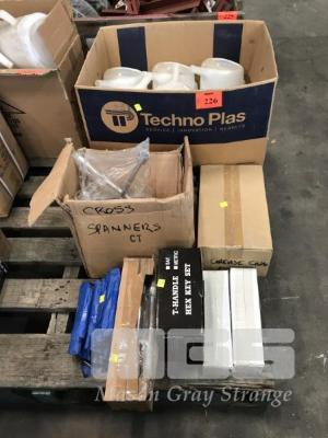 POLY 5 LITRE, CROSS SPANNERS, TUBE SPANNERS, T-HANDLE HEX KEY SET, TIN SHEARS, BEAD BREAKERS & GREASE NOZZLES, 1/2 PALLET