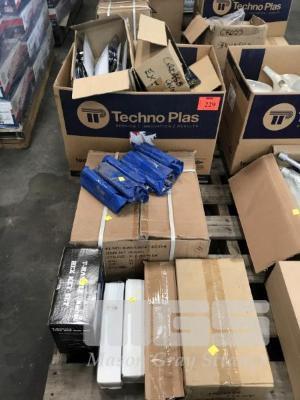 POLY 5 LITRE JUGS, CROSS SPANNERS, TUBE SPANNERS, T-HANDLE HEX KEY SET, TIN SHEARS, BEAD BREAKERS & GREASE NOZZLES, 1/2 PALLET