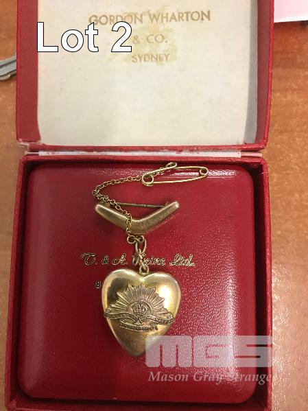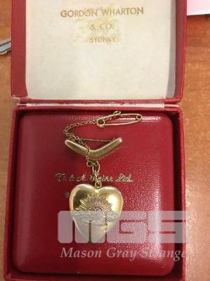 GOLD HEART SHAPED LOCKET WITH RISING SUN MILITARY INSIGNIA MARKED 9CT 6 GMS