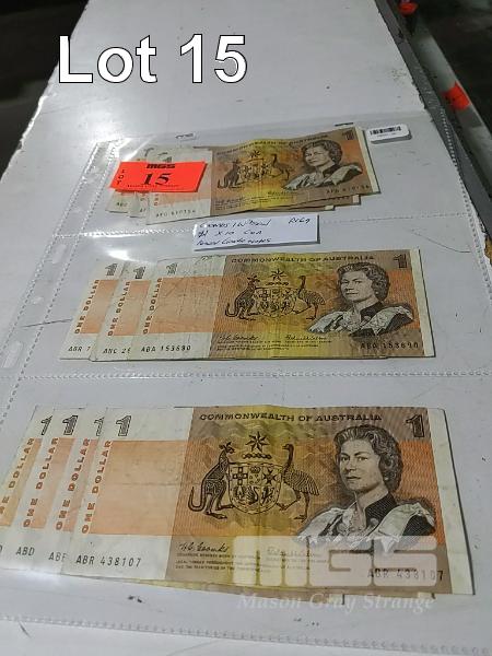 10 X AUSTRALIAN 1 DOLLAR NOTES COOMBS/WILSON, A PREFIX