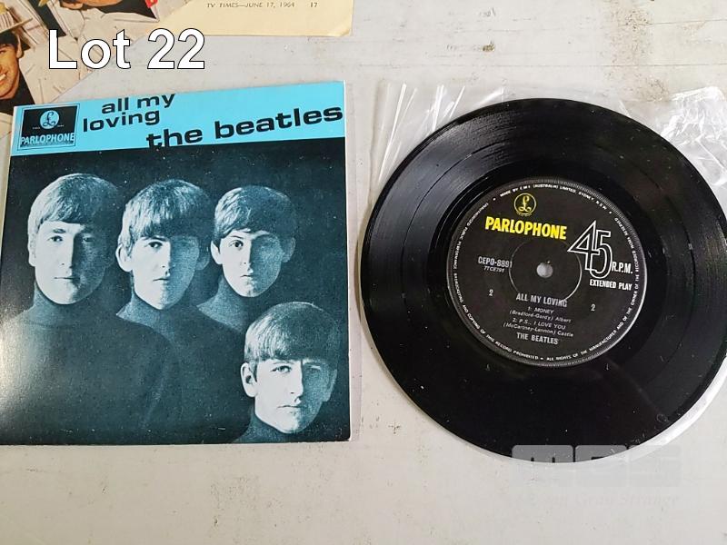 THE BEATLES "ALL MY LOVING" EP AND ORIGINAL BEATLES PARAPHERNALIA CIRCA 1964