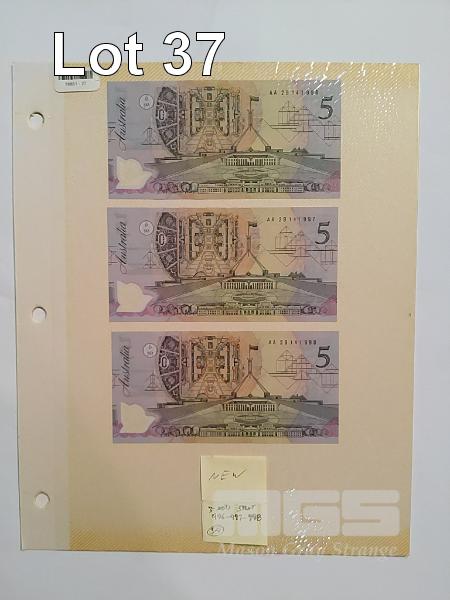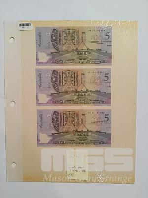 3 X AUSTRALIA, CONSECUTIVE, $5, POLYMER BANKNOTES, INC; AA 29141996-998