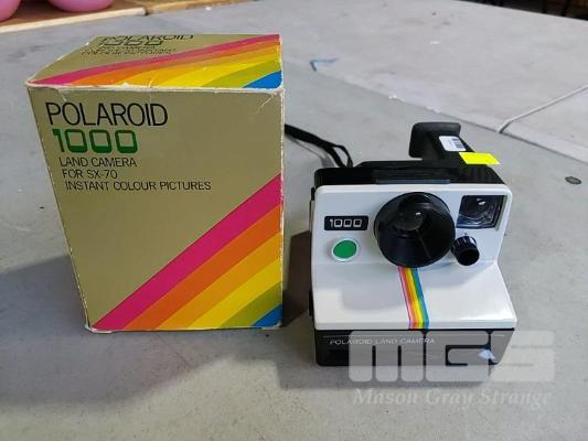 VINTAGE POLAROID 1000 "LAND CAMERA" WITH ORIGINAL BOX AND INSTRUCTION BOOKLET.