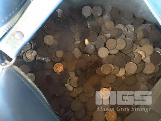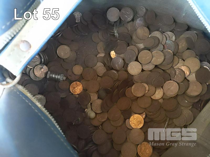 LARGE QUANTITY OF AUSTRALIAN ONE AND TWO CENT PIECES IN OLD TRAVEL BAG (15 KG APPROX)