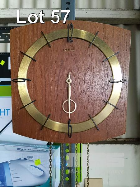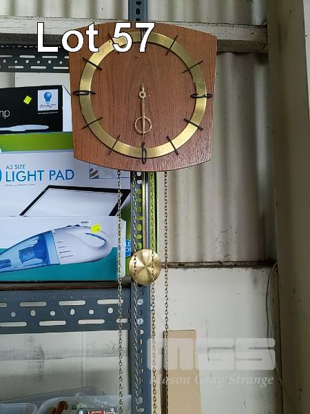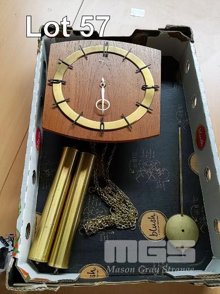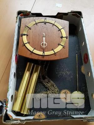 CLASSIC MID CENTURY PENDULUM WALL CLOCK. MINUTE HAND MISSING.
