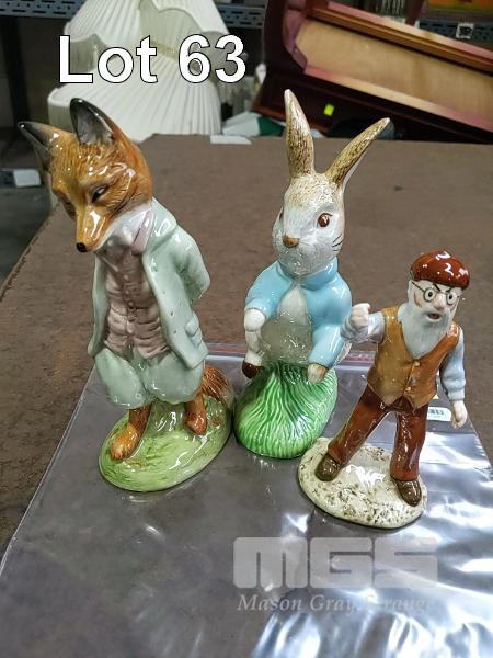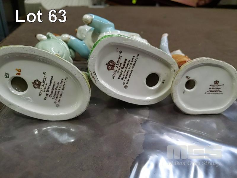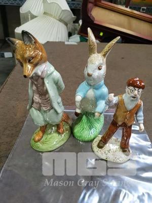 BEATRIX POTTER FIGURINE "FOXY WHISKERED GENTLEMAN", "ROYAL ALBERT ENGLAND ... BEATRIX POTTER (C) F.WARNE & CO.1994 (C)1994 ROYAL ALBERT LTD" BEATRIX POTTER FIGURINE "PETER RABBIT", "ROYAL ALBERT ENGLAND ... BEATRIX POTTER (C) F.WARNE & CO.1994 (C)1994 ROYAL ALBERT LTD" BEATRIX POTTER FIGURINE "MR MCGREGOR", "ROYAL ALBERT ENGLAND ... BEATRIX POTTER (C) F.WARNE & CO.1995 (C)1995 ROYAL ALBERT LTD"