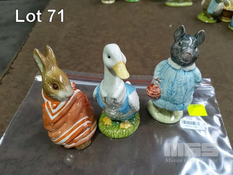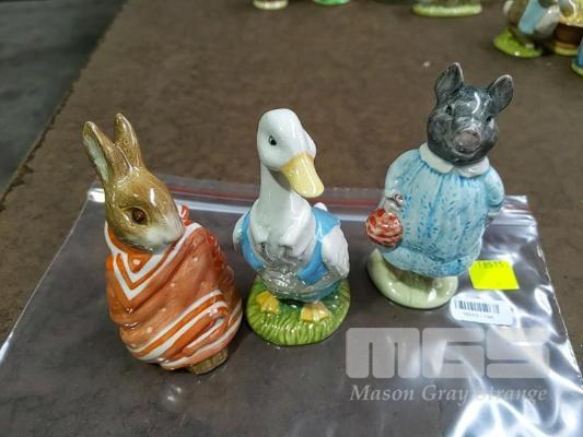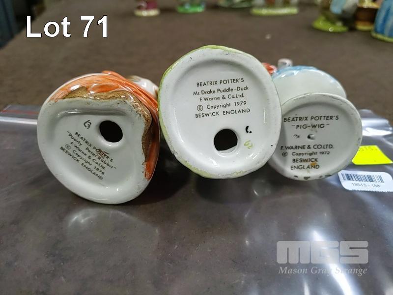 BEATRIX POTTER'S "POORLY PETER RABBIT" FIGURINE "F. WARNE & CO.LTD. (C) COPYRIGHT 1976 BESWICK ENGLAND" BEATRIX POTTER'S "MR DRAKE PUDDLE-DUCK" FIGURINE "F. WARNE & CO.LTD. (C) COPYRIGHT 1979 BESWICK ENGLAND" BEATRIX POTTER'S "PIG WIG" FIGURINE "F. WARNE & CO.LTD. (C) COPYRIGHT 1972 BESWICK ENGLAND"