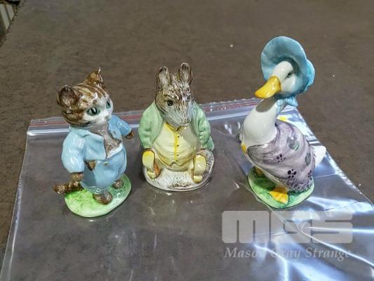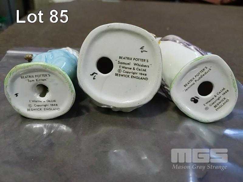 BEATRIX POTTER'S "TOM KITTEN" FIGURINE "F. WARNE & CO.LTD. (C) COPYRIGHT 1948 BESWICK ENGLAND" BEATRIX POTTER'S "SAMUEL WHISKERS" FIGURINE "F. WARNE & CO.LTD. (C) COPYRIGHT 1948 BESWICK ENGLAND" BEATRIX POTTER'S "JEMIMA PUDDLEDUCK" FIGURINE "F. WARNE & CO.LTD. (C) COPYRIGHT 1948 BESWICK ENGLAND"