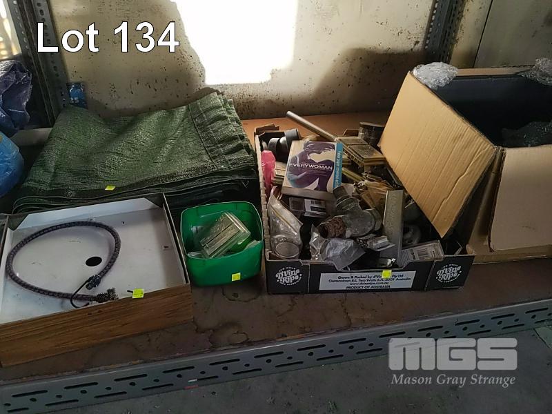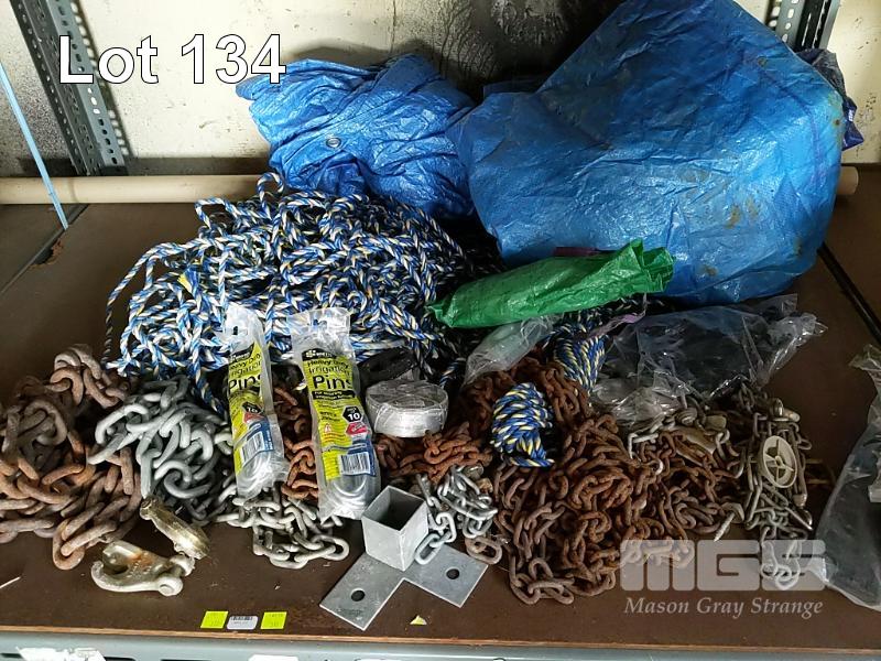 CHAIN, ROPE, HEAVY DUTY IRRIGATION PINS, TARPS, CHAIN HOOK, TIE WIRE, ASSORTED SCREWS AND FASTENERS, SHADE CLOTH ETC (2 x BAYS)