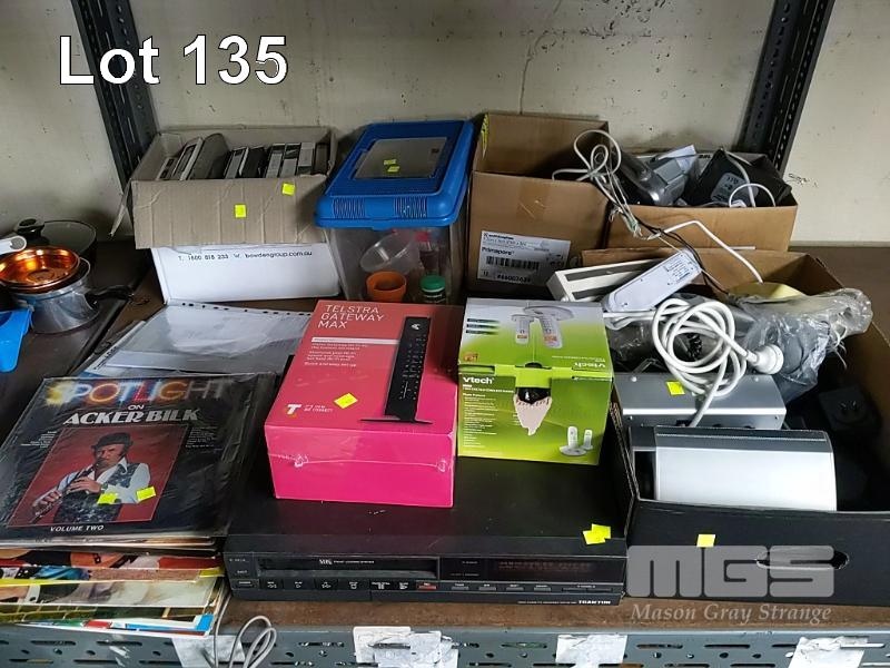 REPTILE TERRARIUM, ASSORTED LONG PLAY RECORDS, VHS PLAYER AND TAPES, CORDLESS TELEPHONES, ROUTER AND OTHER VARIOUS HOUSEHOLD ELECTRICAL (1 x BAY)