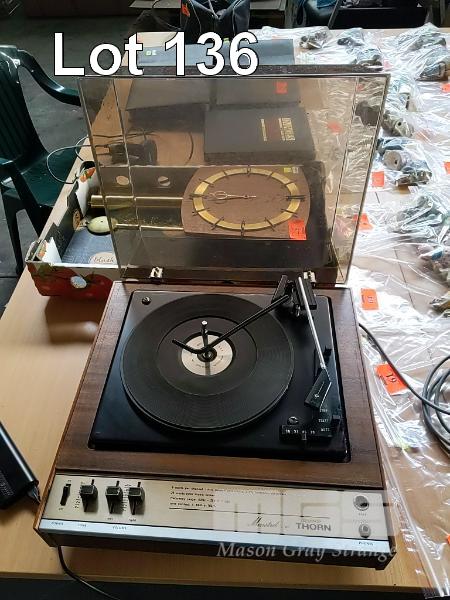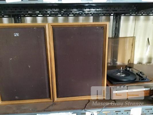 CLASSIC THORN "MINSTREL" TURNTABLE WITH HIS MASTERS VOICE SPEAKERS.