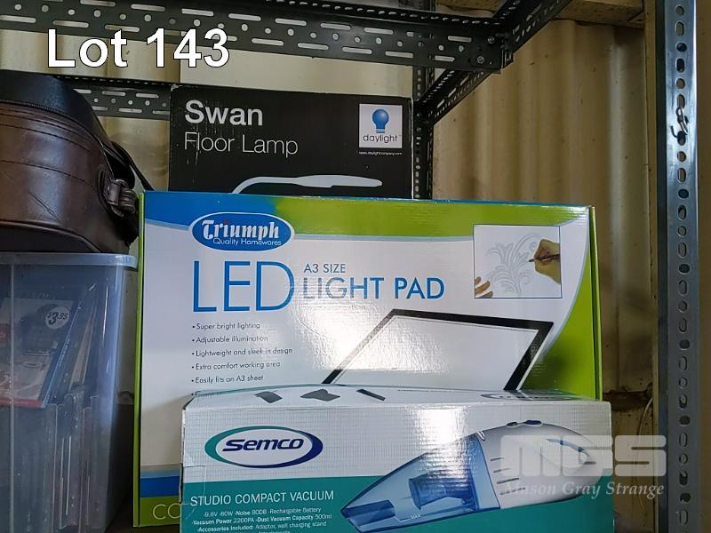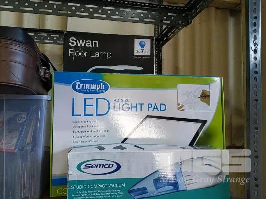 SWAN FLOOR LAMP, SEMCO STUDIO COMPACT VACUUM AND A3 LED LIGHT PAD.