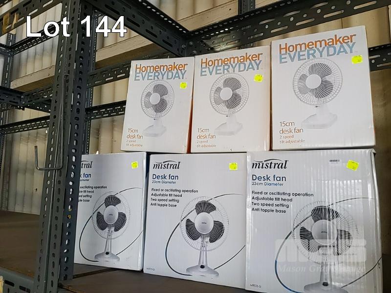3 x MISTRAL 23CM DESK FAN AND 3 x HOMEMAKER 15CM DESK FAN