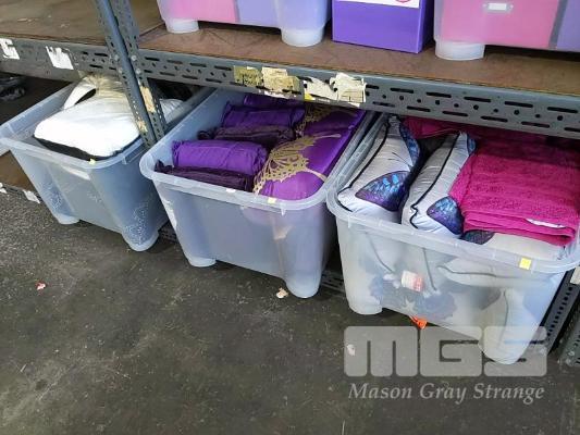 V-SHAPED MEMORY FOAM CLOSE, THROW CUSHIONS AND BATH TOWELS ETC, ALL NEW UNUSED (3 x TUBS)