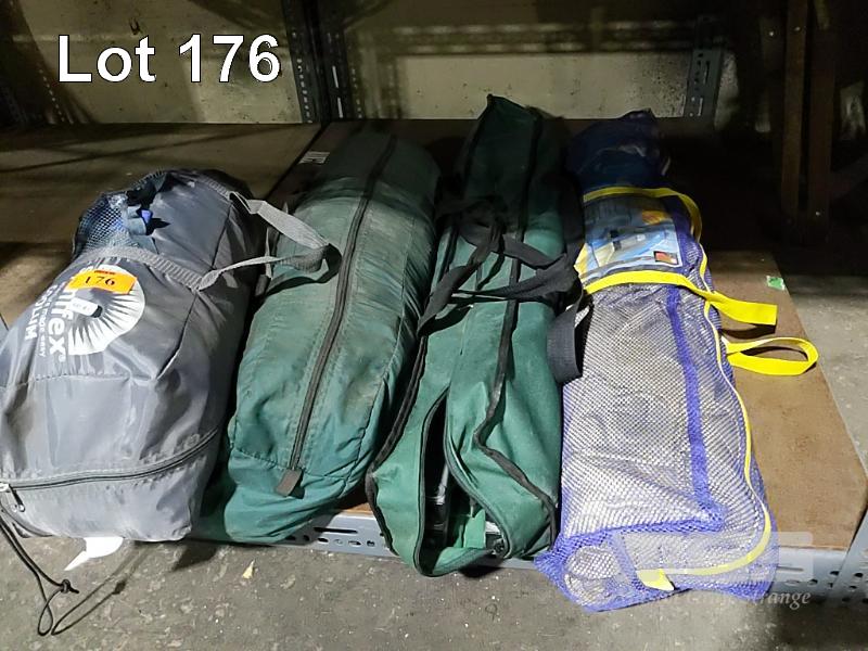 3 x ASSORTED CAMPING TENTS & STRETCHER BED
