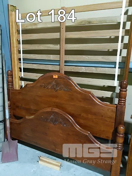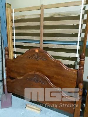 QUEEN SIZE BED FRAMED, PINE DECORATIVE CARVED HEAD & FOOT, SLAT TIMBER BASE