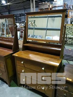 MAHOGANY DRESSER, 3 DRAWER UNDERSTORAGE, TILTING MIRROR, CERAMIC KNOBS