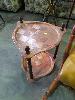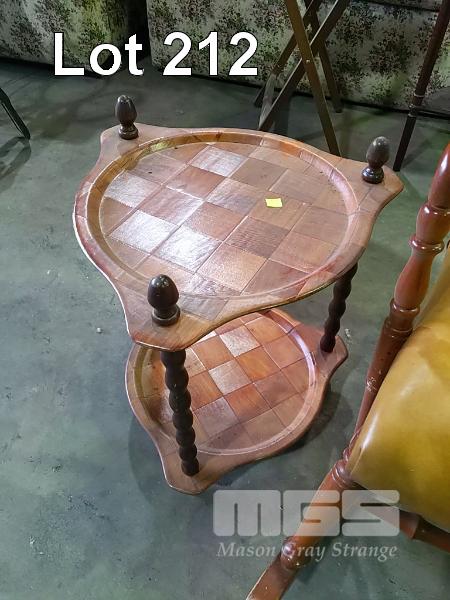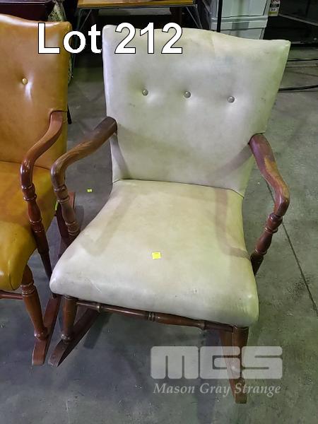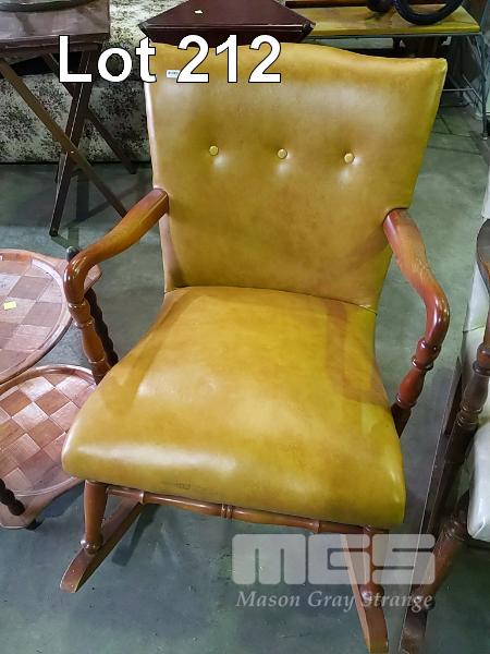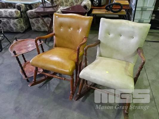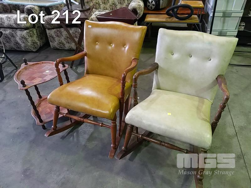 2 x VINTAGE TIMBER FRAME ROCKING CHAIRS AND SIDE TABLE