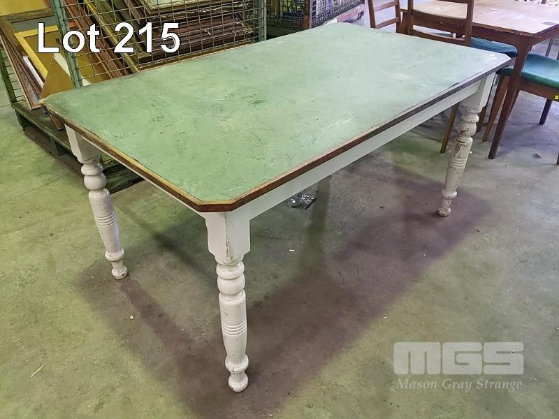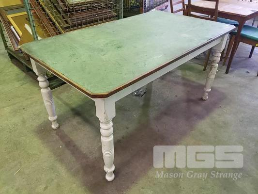 VINTAGE VINYL TOPPED 6-SEATER TIMBER DINING TABLE