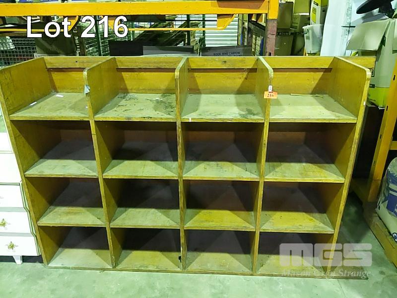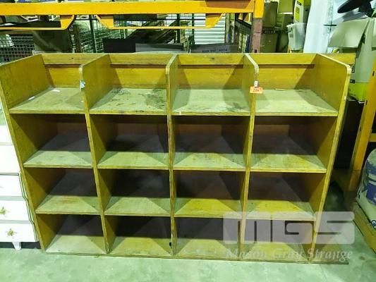 TIMBER SCHOOL PIGEON HOLE SHELF UNIT, 16 COMPARTMENT