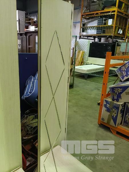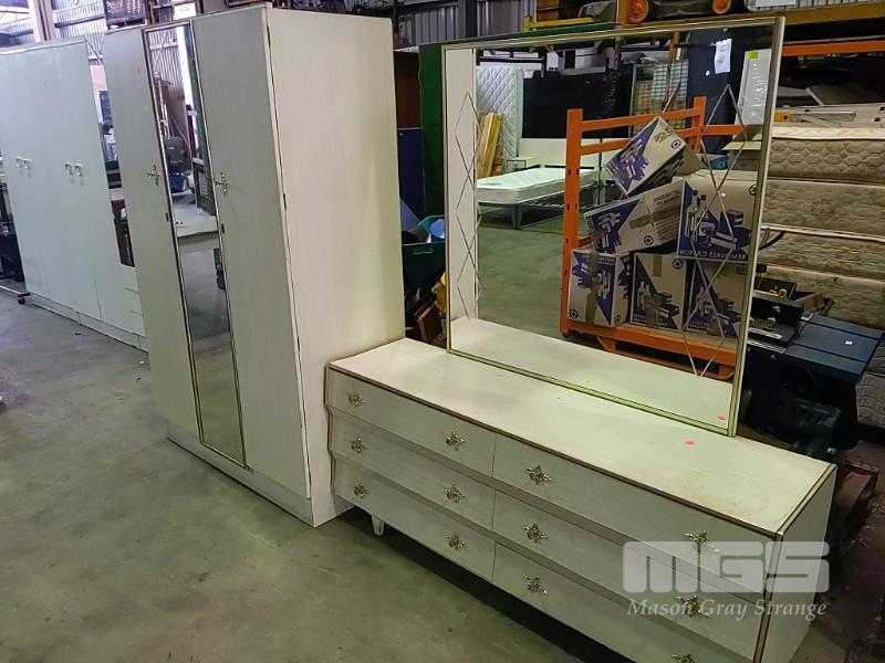 2-DOOR VINTAGE WARDROBE WITH MIRROR CENTRE PANEL AND MATCHING 6-DRAWER DRESSER WITH LARGE DIAMOND GROOVED MIRROR