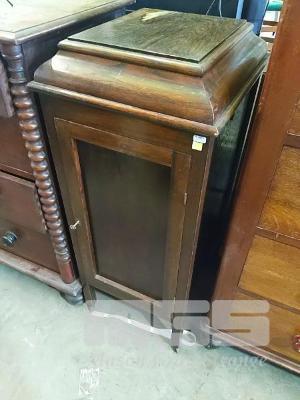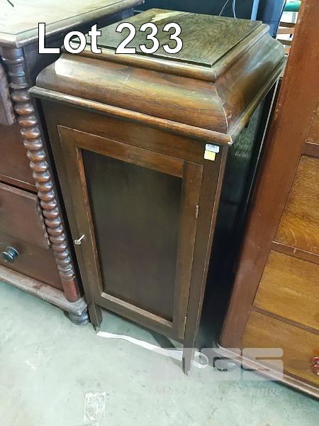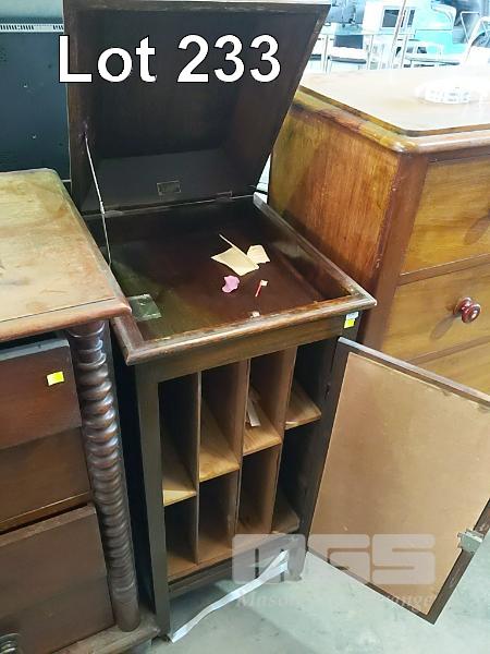 ANTIQUE "THE HELYOLA" GRAMOPHONE CABINET (NO GRAMOPHONE MODIFIED FOR LP RECORD STORAGE).