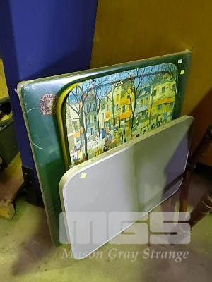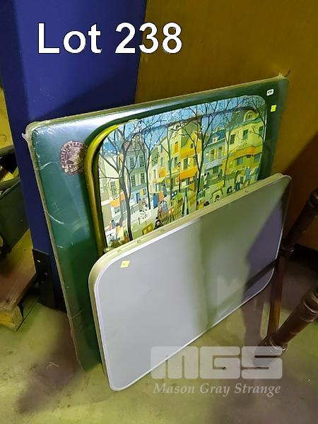 3 x FOLDING TABLES INCLUDING 2 x TV TABLES AND "SOU-WESTER" CARD TABLE NEW IN ORIGINAL PACKAGING.