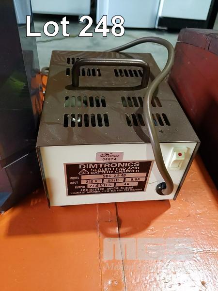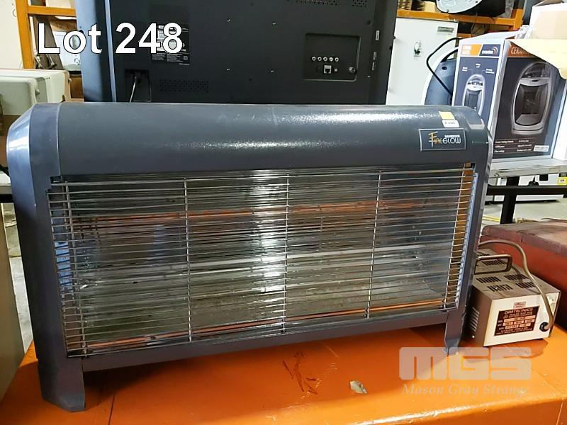 KAMBROOK "FIREGLOW" RADIANT BAR HEATER AND CLASSIC DIMTRONICS LEAD ACID BATTERY CHARGER.
