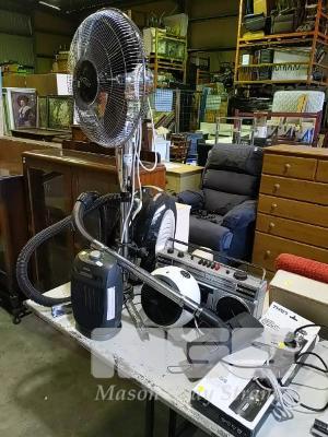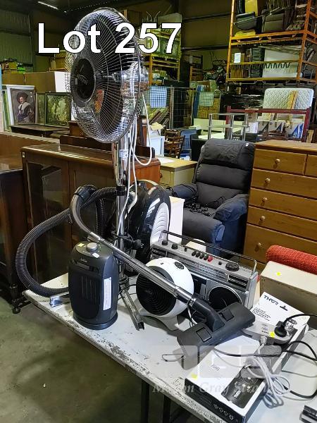 COLLECTION OF HOUSEHOLD ELECTRICAL INCLUDING HOMEMAKER VACUUM CLEANER, MISTRAL PEDESTAL FAN, SUNBEAM RADIANT HEATER, MISTRAL BLOW HEATER, SANYO RADIO CASSETTE PLAYER AND MISCELLANEOUS REMOTES AND POWER BOARDS