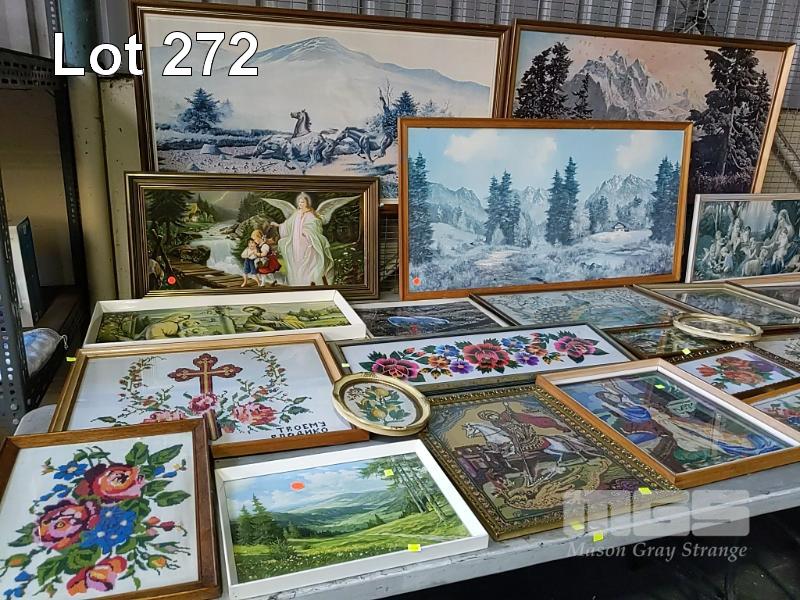 COLLECTION OF PICTURE FRAMES CONTAINING PRINTS, RELIGIOUS ICONS AND TAPESTRIES (30 FRAMES APPROX.)