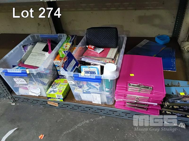 2 X TUBS OF OFFICE STATIONERY & SUPPLIES, ZIP LOCK BAGS, CLIP BOARD FOLDERS & STORAGE TINS