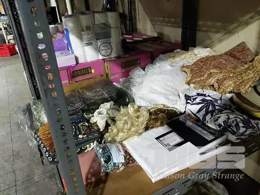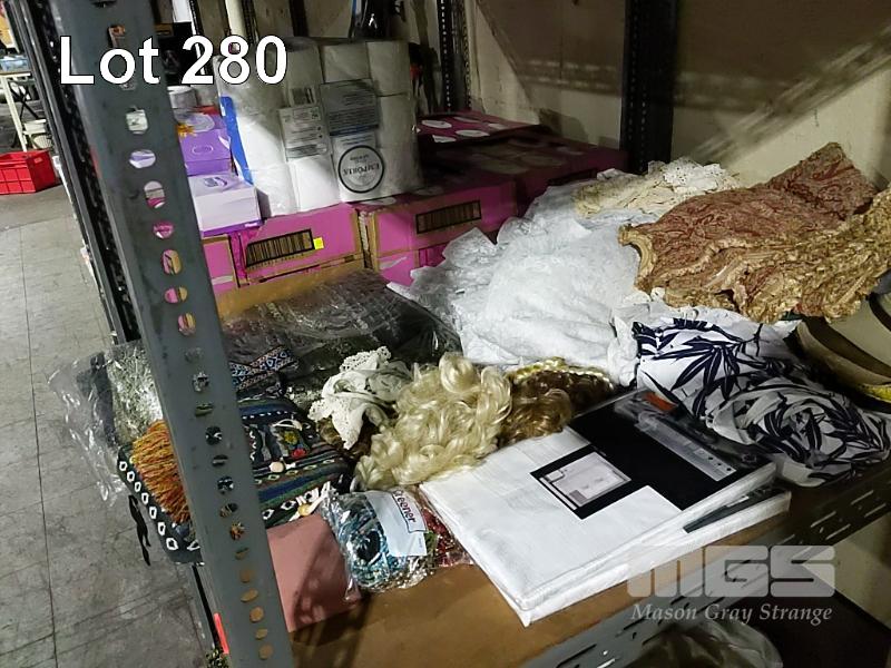 ASSORTED FABRIC, LACE, HATS & WIGS, 1 x SHELF