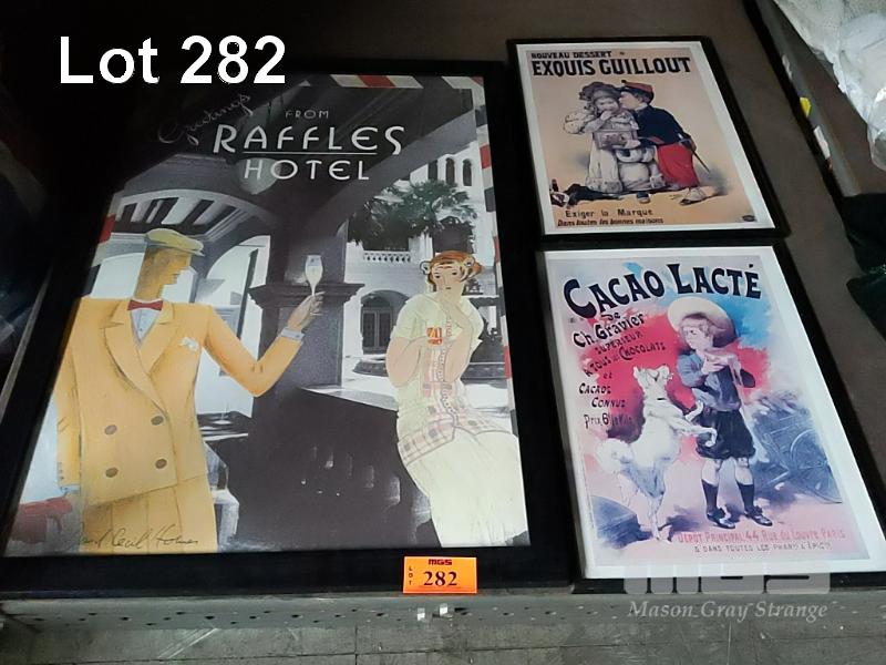 3 x FRAMED PARISIAN ADVERTISING POSTERS FRAMED