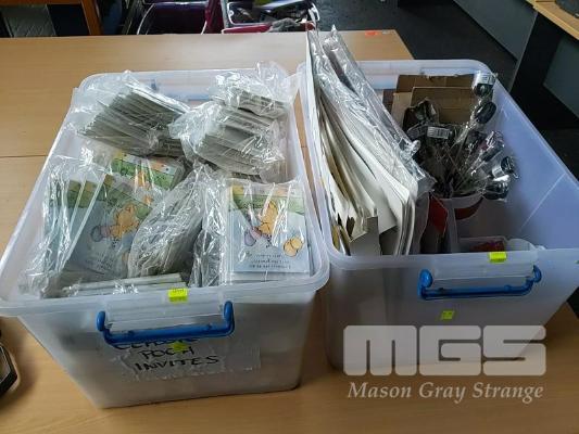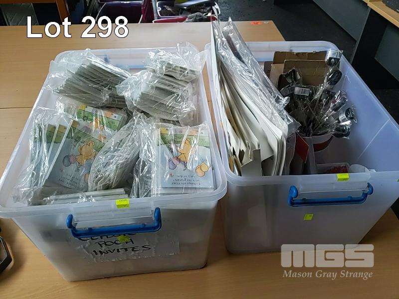 LARGE QUANTITY OF KIDS BIRTHDAY PARTY INVITES INCLUDING TUB OF CLASSIC POOH BEAR INVITES, LOLLY BOXES, BIRTHDAY CAKE NUMBERS AND MORE (2 x CRATES)