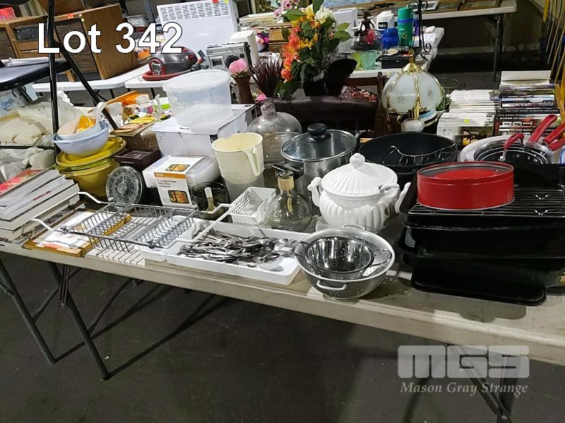 ASSORTED KITCHENWARE, POTS, PANS, BAKING TRAYS, PLASTICWARE, ETC