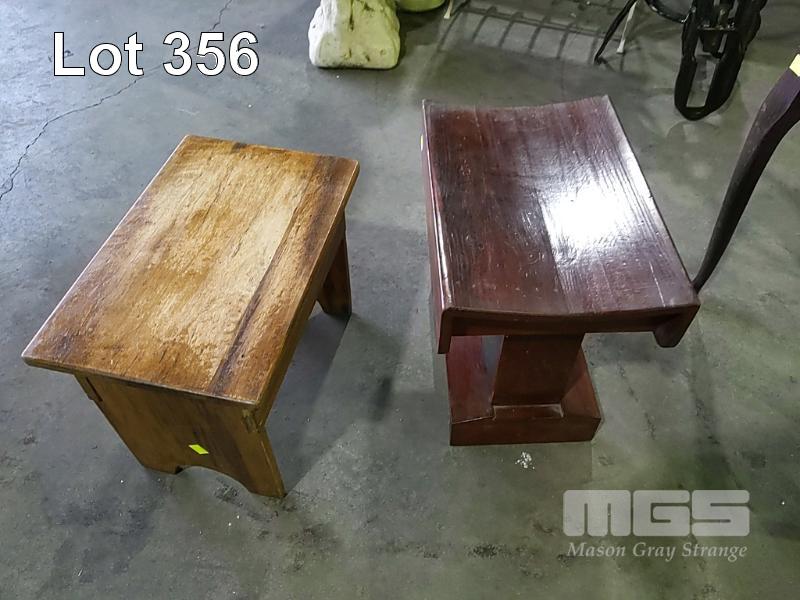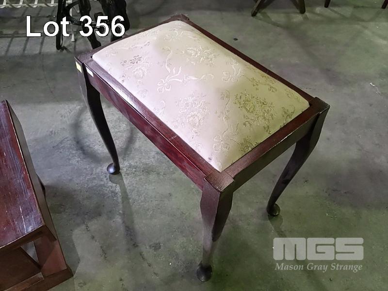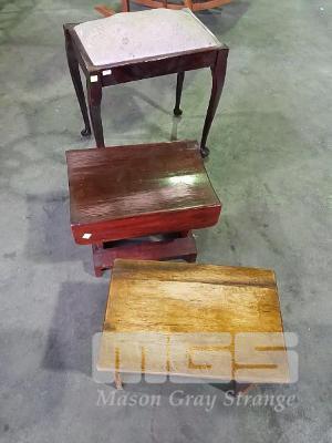 ANTIQUE CABRIOLE LEG PIANO STOOL, WOODEN FOOTSTOOL AND WOODEN LEG REST